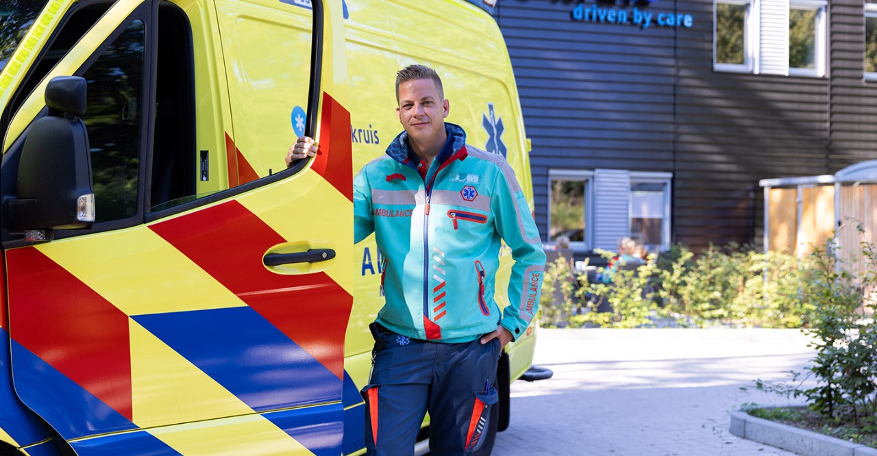 Geen zorgbaan is hetzelfde. Van kraamverzorger tot sociaal werker en van psychiater tot dierenartsassistent. Wat maken al die verschillende zorgprofessionals mee in hun werk? Wat maakt hun werk uniek en waar lopen ze tegenaan? Daar lees je over in de rubriek ‘Ik zorg’. Met in deze editie: Vincent van den Ham (36), ambulancechauffeur in de Veluwe bij Witte Kruis.