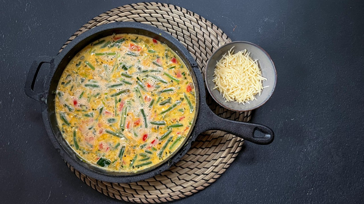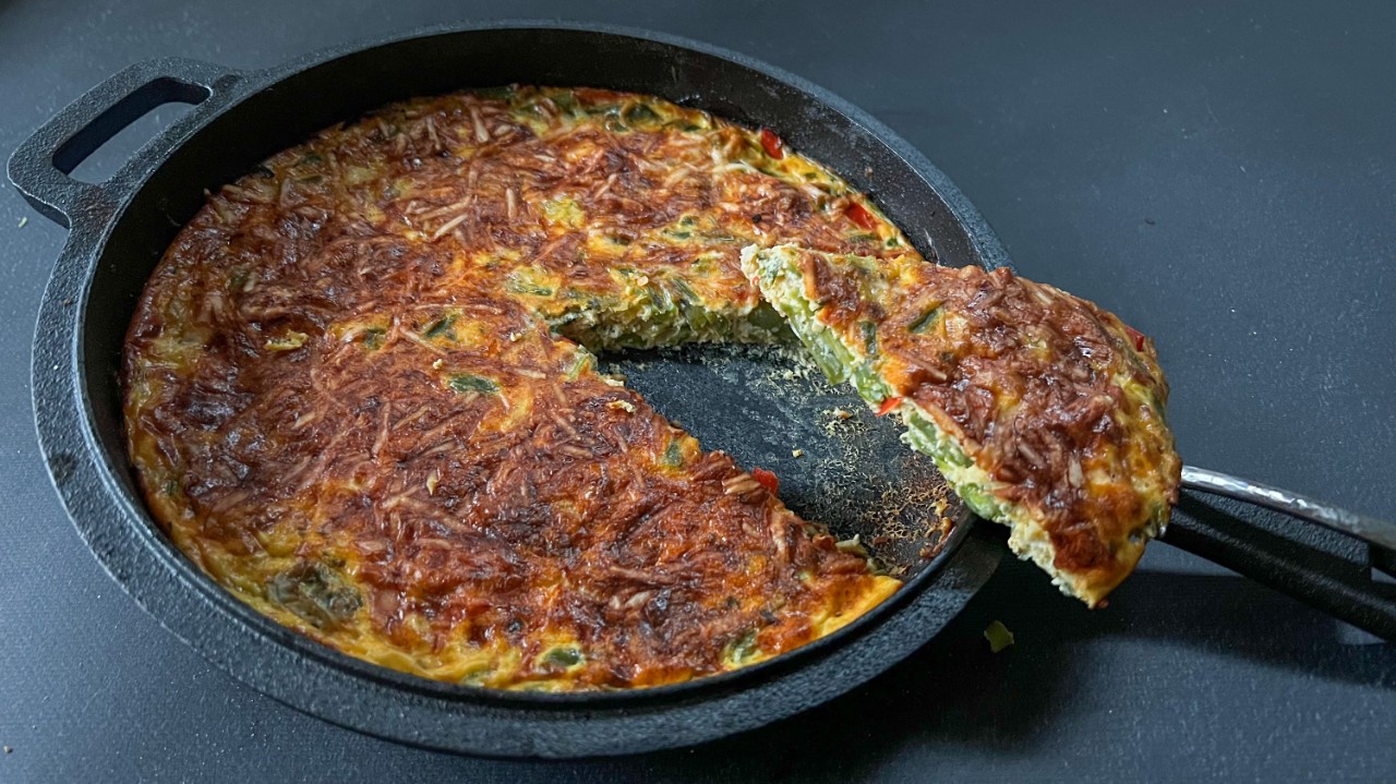 Ei kan eigenlijk altijd: gekookt, gebakken of geklutst: in dit geval met groenten. Nienke gebruikt in dit recept paprika, sperziebonen, prei en ui, maar houd je meer van spinazie of zoete aardappel? Ook dat kan in deze frittata. Een eiwitrijke lunch (of als tussendoortje) voor die energieboost tijdens een drukke dienst.