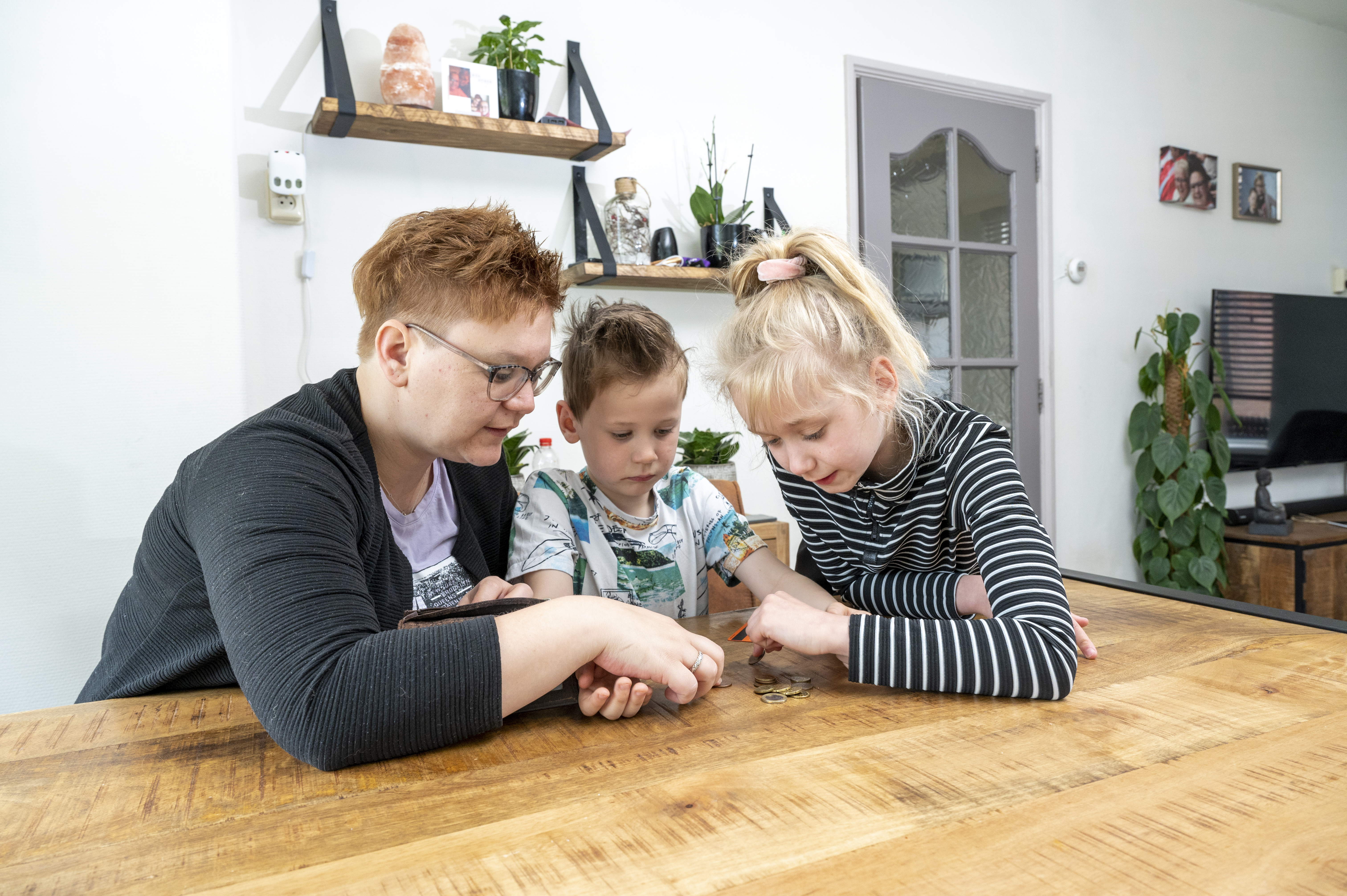 ‘Vraag in ieder geval om hulp. Praat met iemand die je vertrouwt en bij wie je je trots opzij durft te zetten. Dat kan een vriend of vriendin zijn, maar bijvoorbeeld ook een vertrouwenspersoon op je werk. Ik vind dat we ons vrijer moeten kunnen voelen om dit soort dingen bespreekbaar te maken. Zelf help ik een gezin in de buurt: hardwerkende tweeverdieners met een modaal inkomen en drie kinderen. Iedere maand is het een uitdaging om de eindjes aan elkaar te knopen. Heel triest vind ik dat. Dus help ik hen bijvoorbeeld bij het aanvragen van zwemles voor de kinderen. Of ik kook voor anderen: nasi of macaroni om in te vriezen, genoeg voor meerdere dagen. Ook adviseer ik om huishoudboekjes te gebruiken, zodat ze in ieder geval hun inkomsten en uitgaven op orde hebben. En iemand te vragen bij het regelen van geldzaken als je die niet snapt, zoals de belastingaangifte. Nog een tip: kijk in de supermarkt op de laagste schappen in plaats van die op ooghoogte. Onderin liggen de goedkoopste producten.’